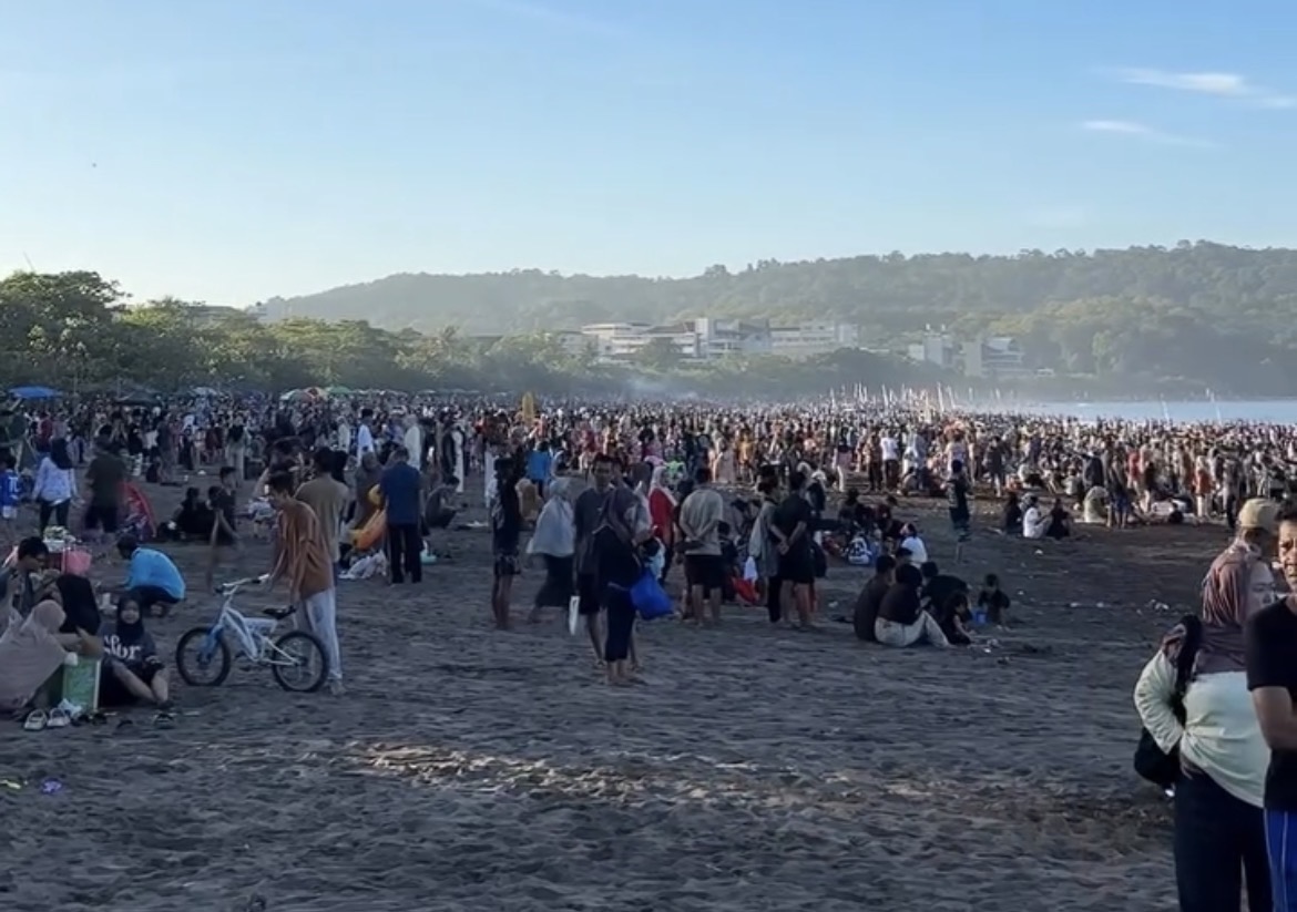 Dalam rekaman tersebut, terlihat hamparan pasir Pantai Pangandaran nyaris tak terlihat karena tertutup oleh lautan manusia. Dari anak-anak hingga orang dewasa tampak memadati bibir pantai. Tak hanya mereka yang berjalan kaki, beberapa pengunjung bahkan terlihat membawa sepeda di tengah kerumunan yang sangat rapat, seolah tidak ada ruang tersisa untuk sekadar bernapas lega.