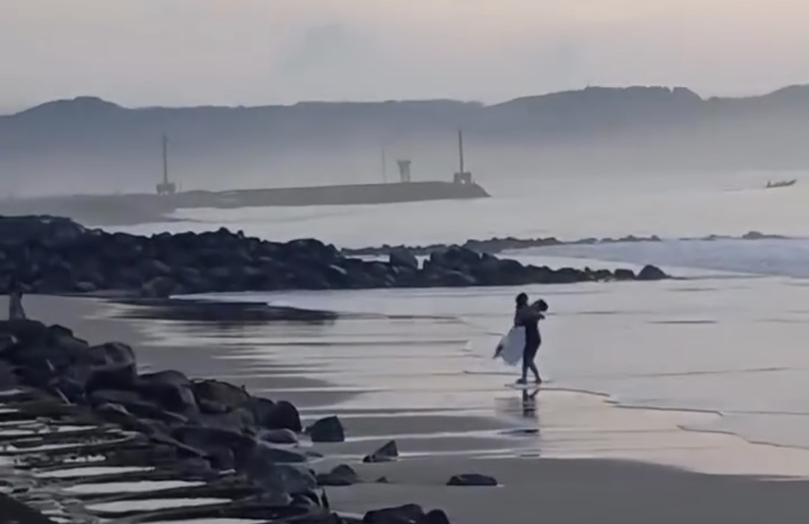 Bandung, zonajabar.com – Sebuah pemandangan romantis yang tertangkap kamera di tepi pantai baru-baru ini menjadi pusat perhatian di jagat maya. Dalam sebuah video pendek yang beredar luas, terlihat sepasang kekasih sedang menikmati waktu bersama di bibir pantai dengan latar belakang deburan ombak dan langit senja yang syahdu.